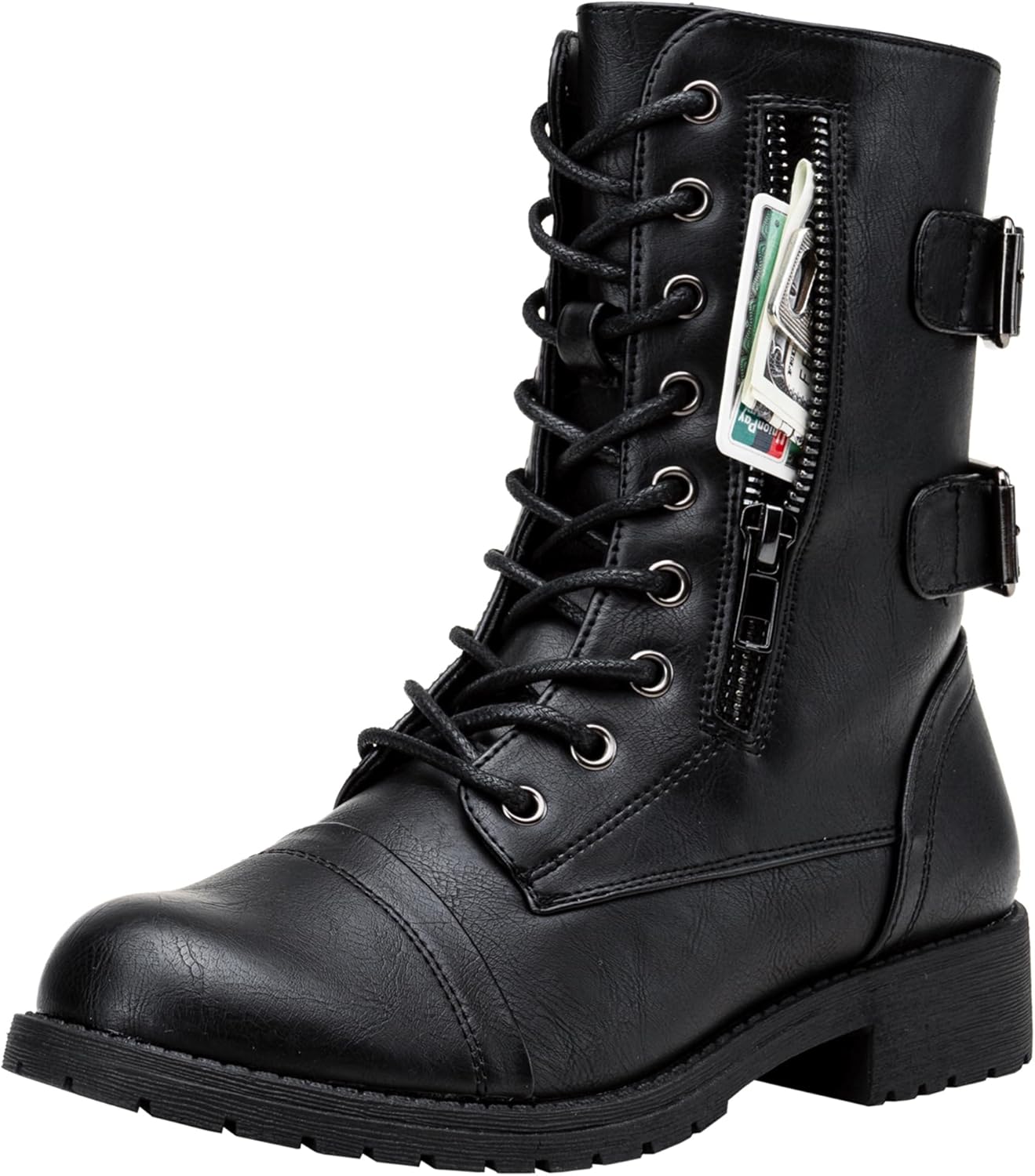- Classic combat boots lace up with inner zipper can adjust the tightness and easy to wear