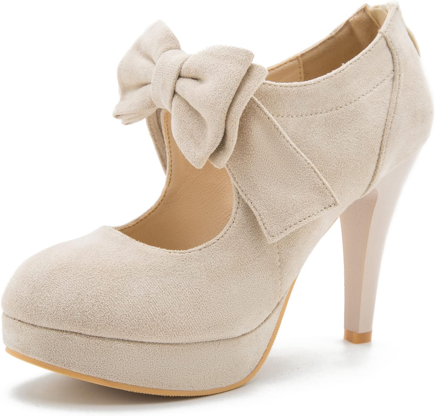 Women’s Bow Heels Mary Jane High Heel Closed Toe Platform Vintage Dress Pumps